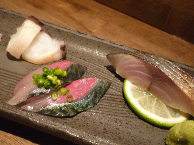 タコ、サバ、シメサバの炙りです。