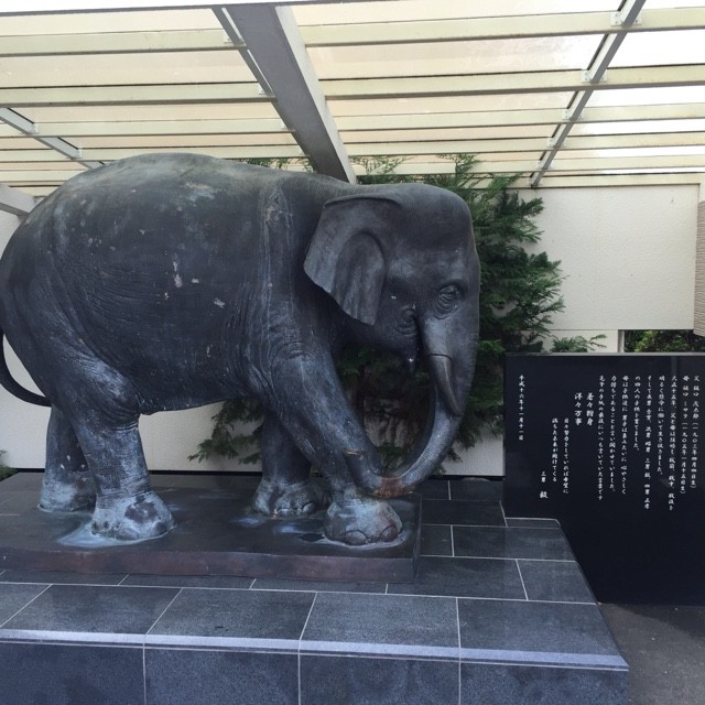 ここは株式会社山口油屋福太郎が経営しているところだったのです。隣には象の銅像。はてなぜに象・・・・・・
