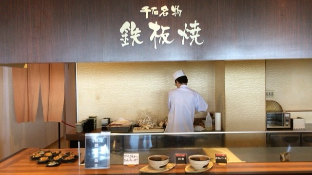 写真の見えていない左側が鉄板焼きコーナーチキンステーキでいた。