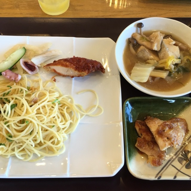 創作コーナーにはパスタ、中華風の味付けのものや茶碗蒸しなど